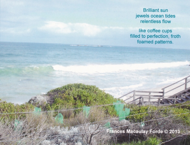 On May 30th last year, she’d taken a fabulous photo at Mullalloo beach and wanted me to write something to go with the photo.  Naturally, I was happy to oblige and sent a short poem back within half an hour.  She was totally amazed with what I ‘saw’ in the frame…