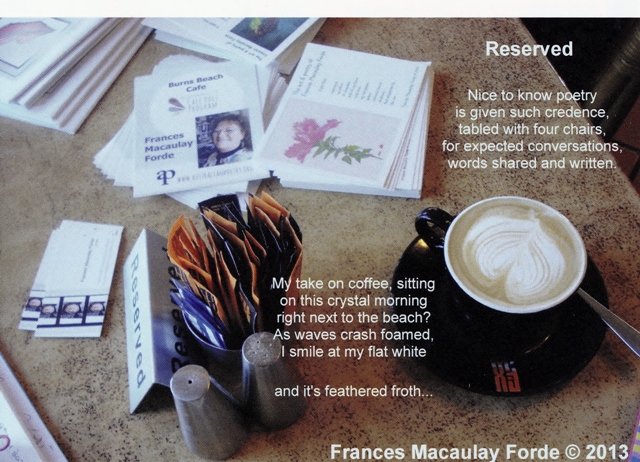 Recently I was in Residence at Burn Beach Cafe as part of the Cafe Poets Project with Australian Poetry, our national organisation and my postcards were quite popular.