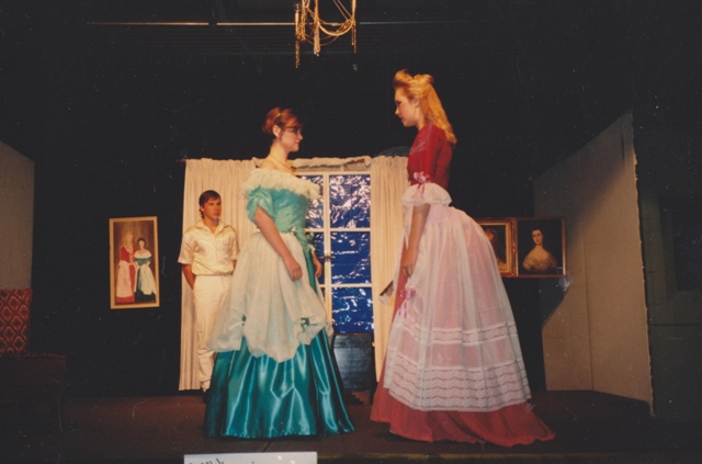 Our first performance was 3 x 1 act plays at Ocean Reef Senior High School’s theatre. I did costumes, make-up, programs and tickets while my daughter helped with props and appeared in the hilarious ‘It’ll be Alright on the Night’ – her first acting role.