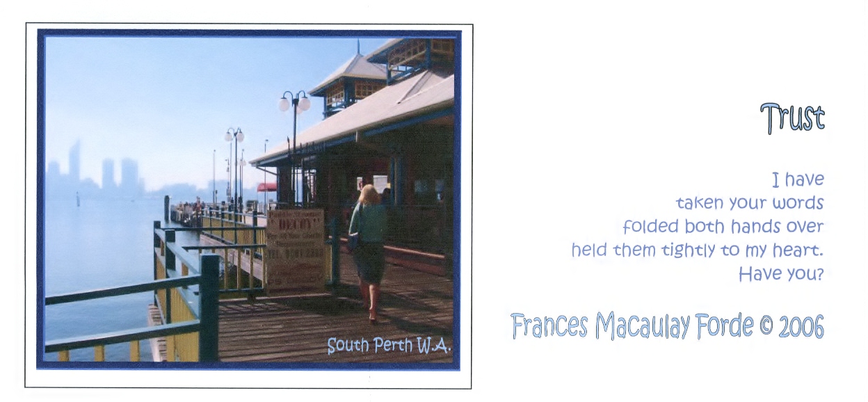 #FrancesMacaulayForde #PoetryPostcards #Cinquains #Poetry #FrenchPoetry #Trust #Romance #LovePoems #SouthPerth #PerthCity #SwanRiver