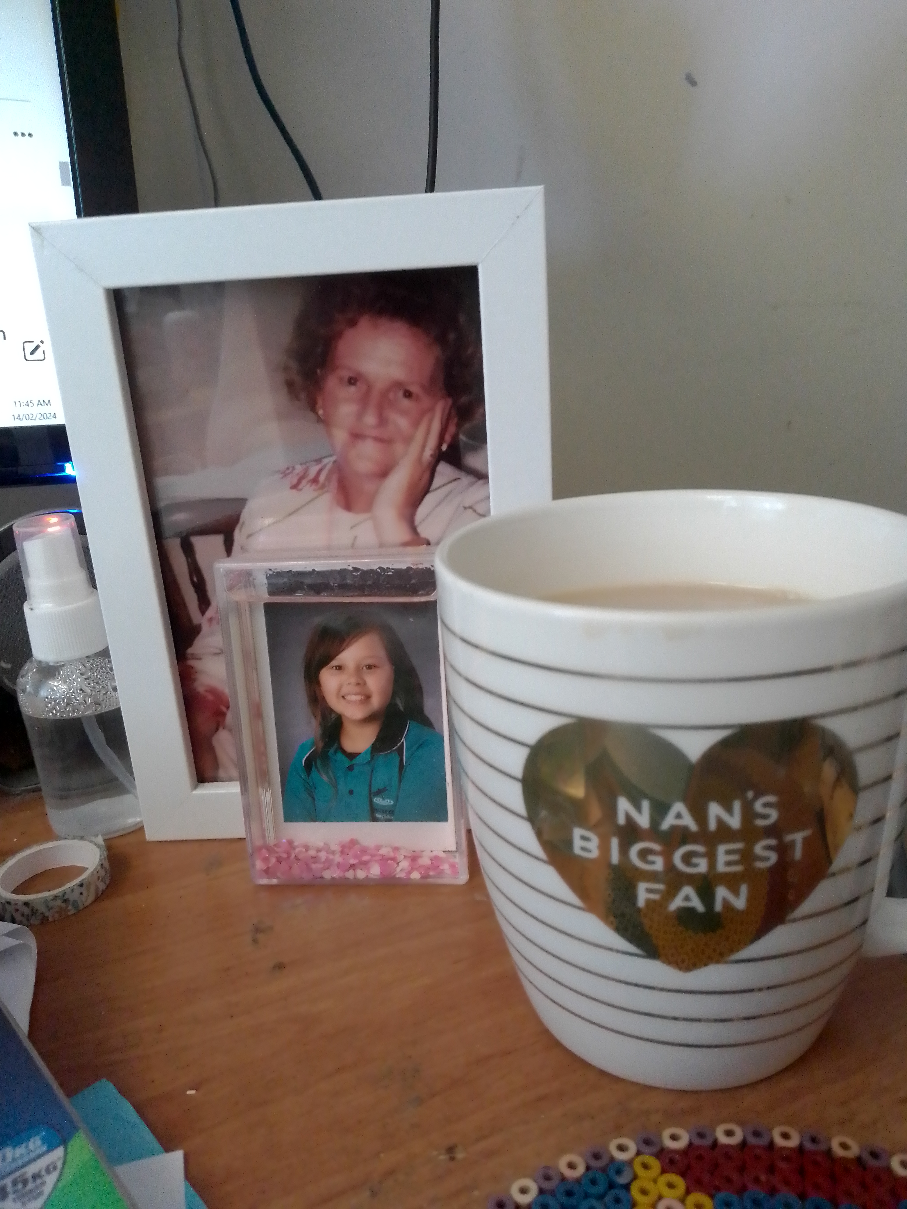 is in a ‘Nan’s Biggest Fan’ mug given by my grandies,
