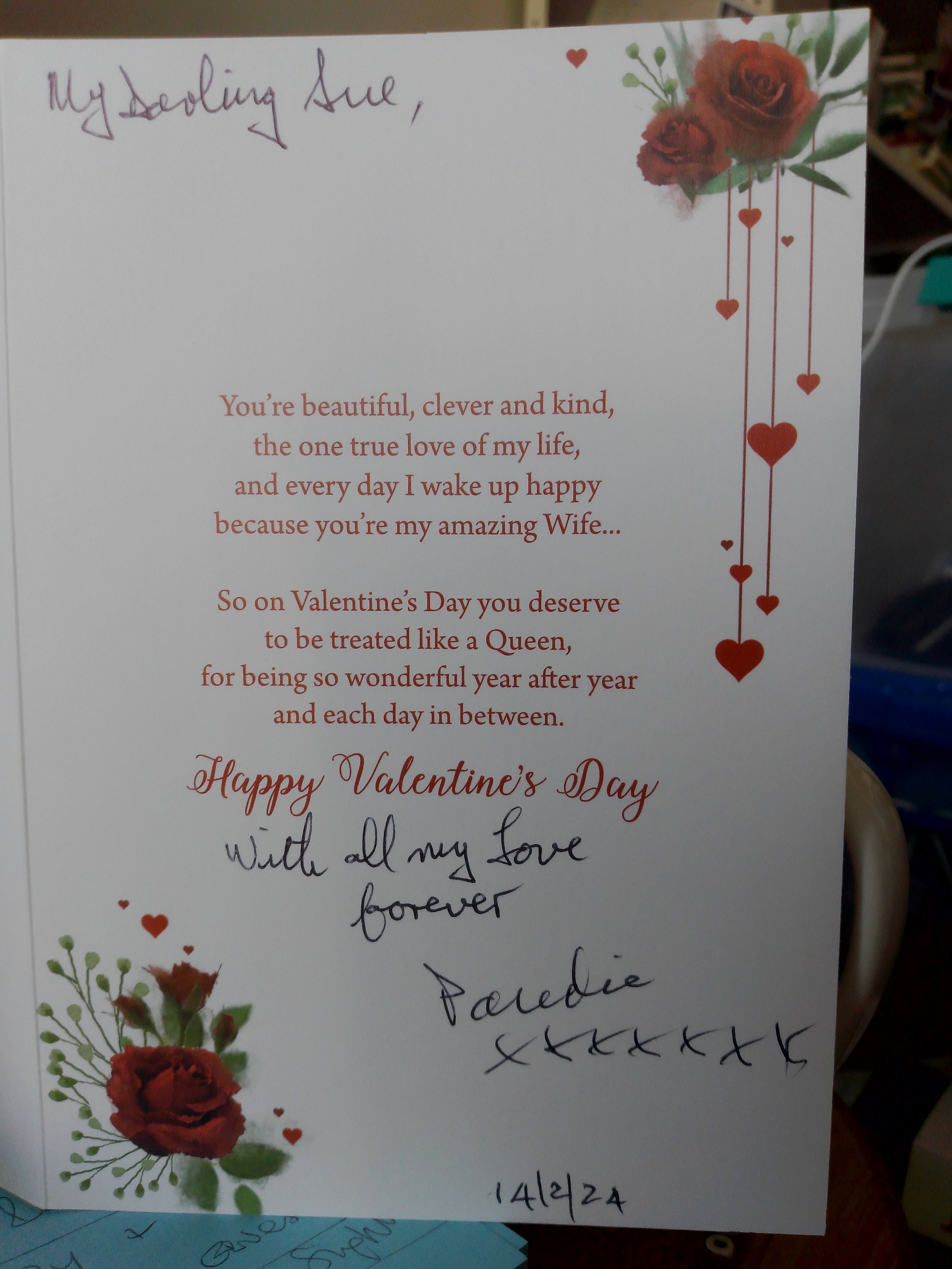 2024: Happy Valentine’s Day, may you be surrounded by love… just like I am. We spent the afternoon at Sir Charles Gardiner Hospital getting the results of Paudie’s current MRI. As is my want, while waiting for an appointment, I wrote a poem. To celebrate the ALL CLEAR result and because it’s Valentine’s Day, we had a lovely Indian buffet at Koh I Noor Restaurant in Padbury.